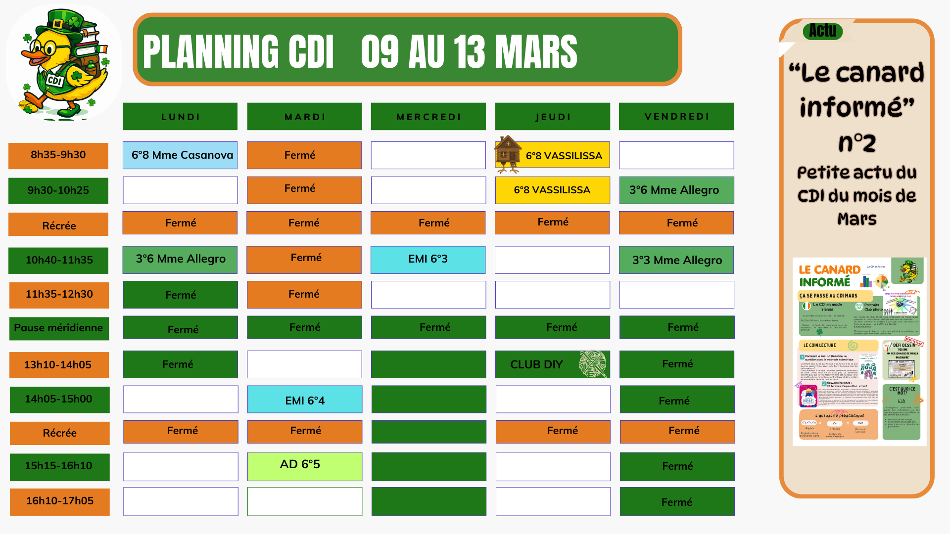 Le CDI est ouvert selon le planning suivant :