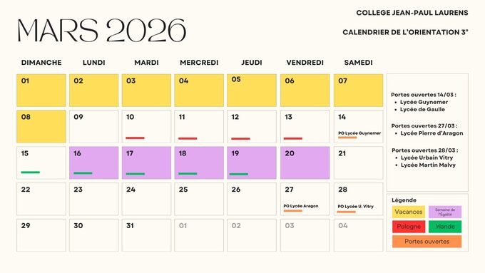 Un calendrier de l'orientation est aussi consultable et sera mis à jour aussi souvent que possible.
